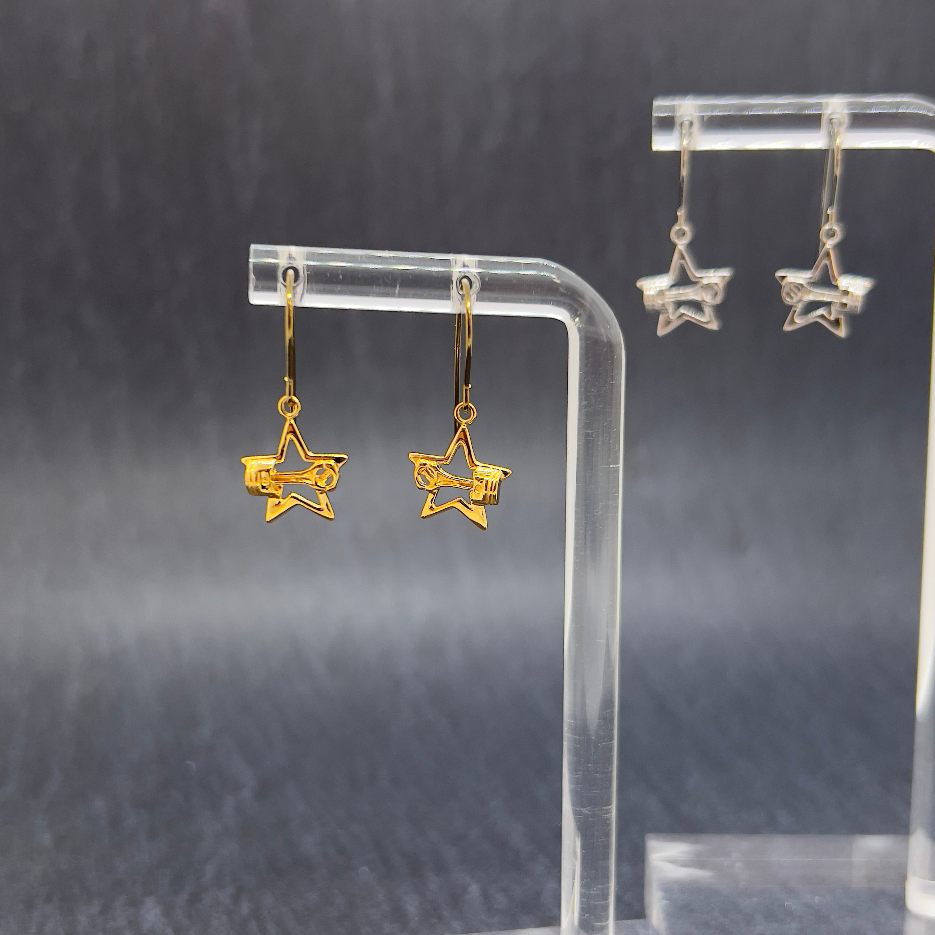 スバルのマークにある星と水平対向エンジンをモチーフにしたフックタイプのピアスです。ゆらゆらと揺れるタイプで水平対抗エンジンの動きをイメージしました。