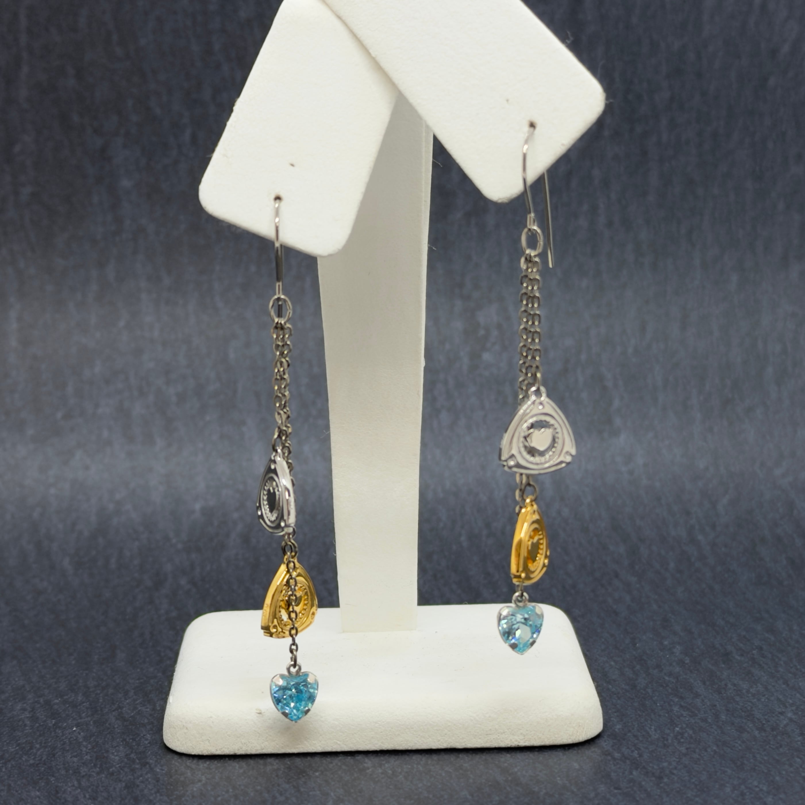 ロータリーエンジンを象ったROTARY HURTSチャームとハートシェイプのキュービックジルコニアを組み合わせた3連チェーンタイプのピアスです。