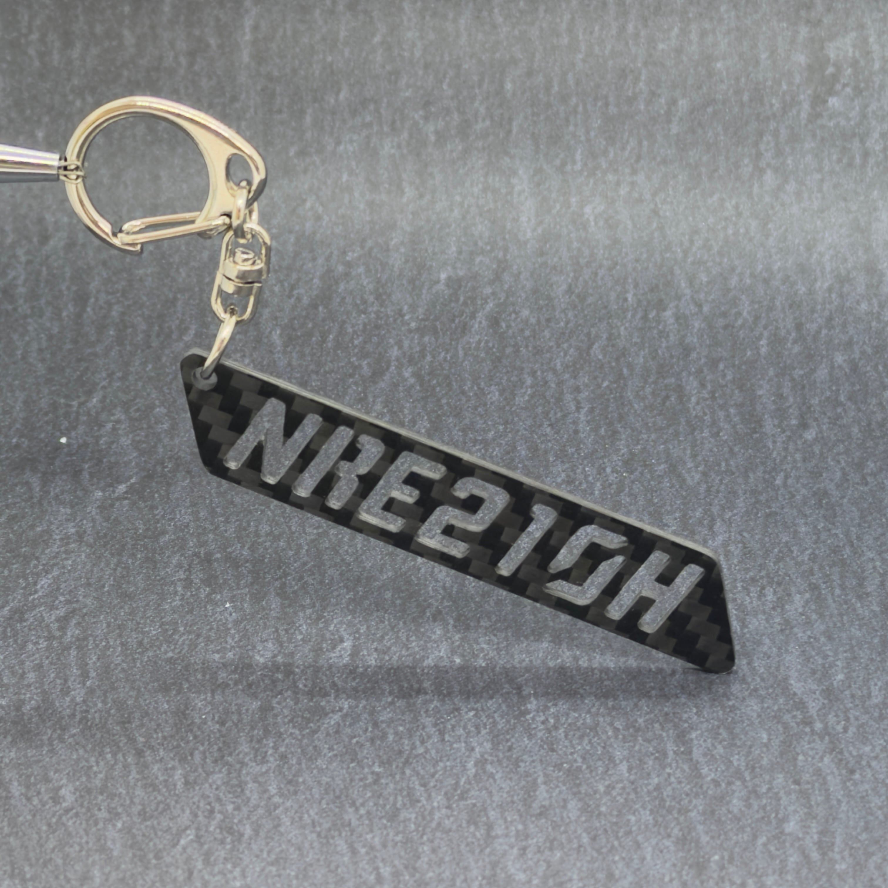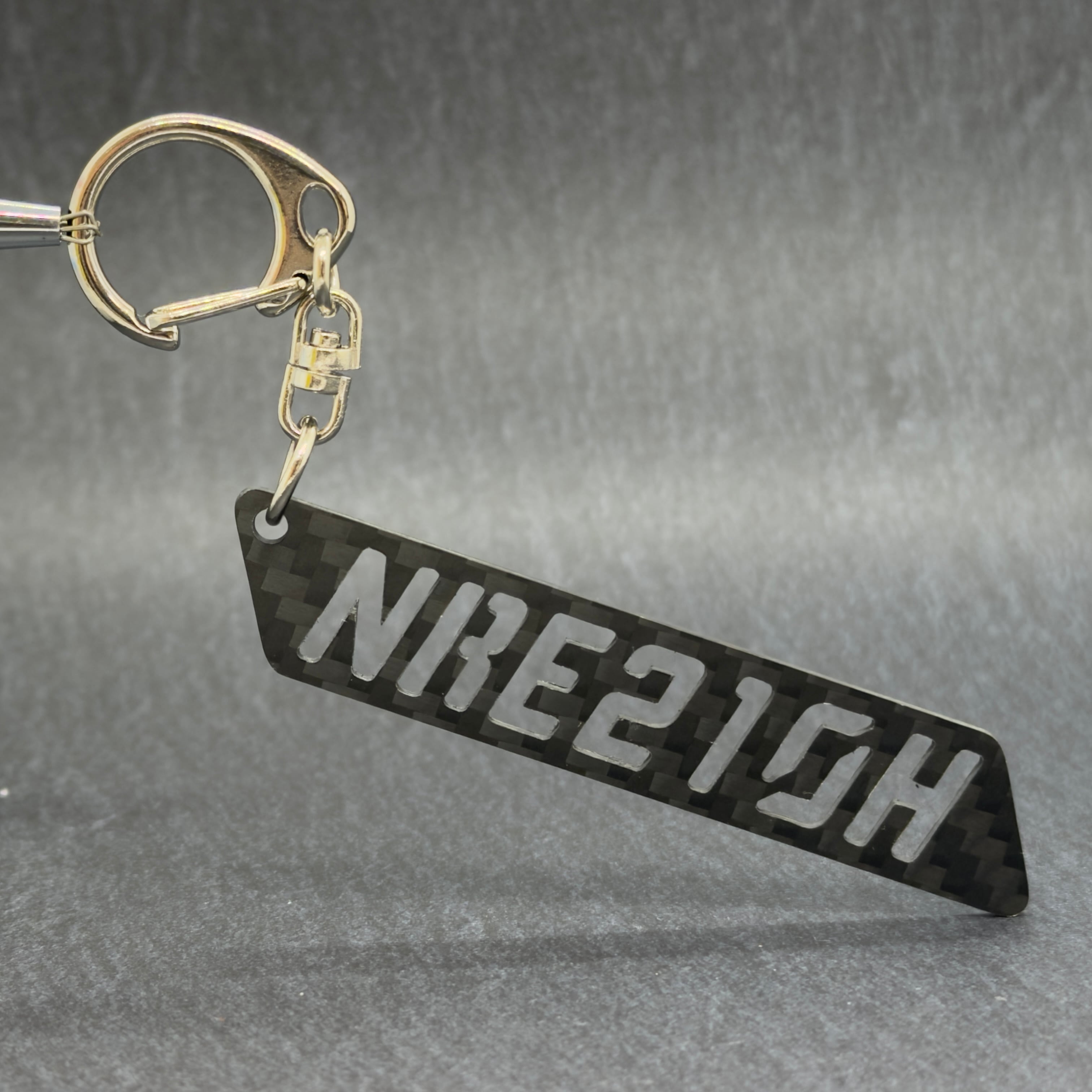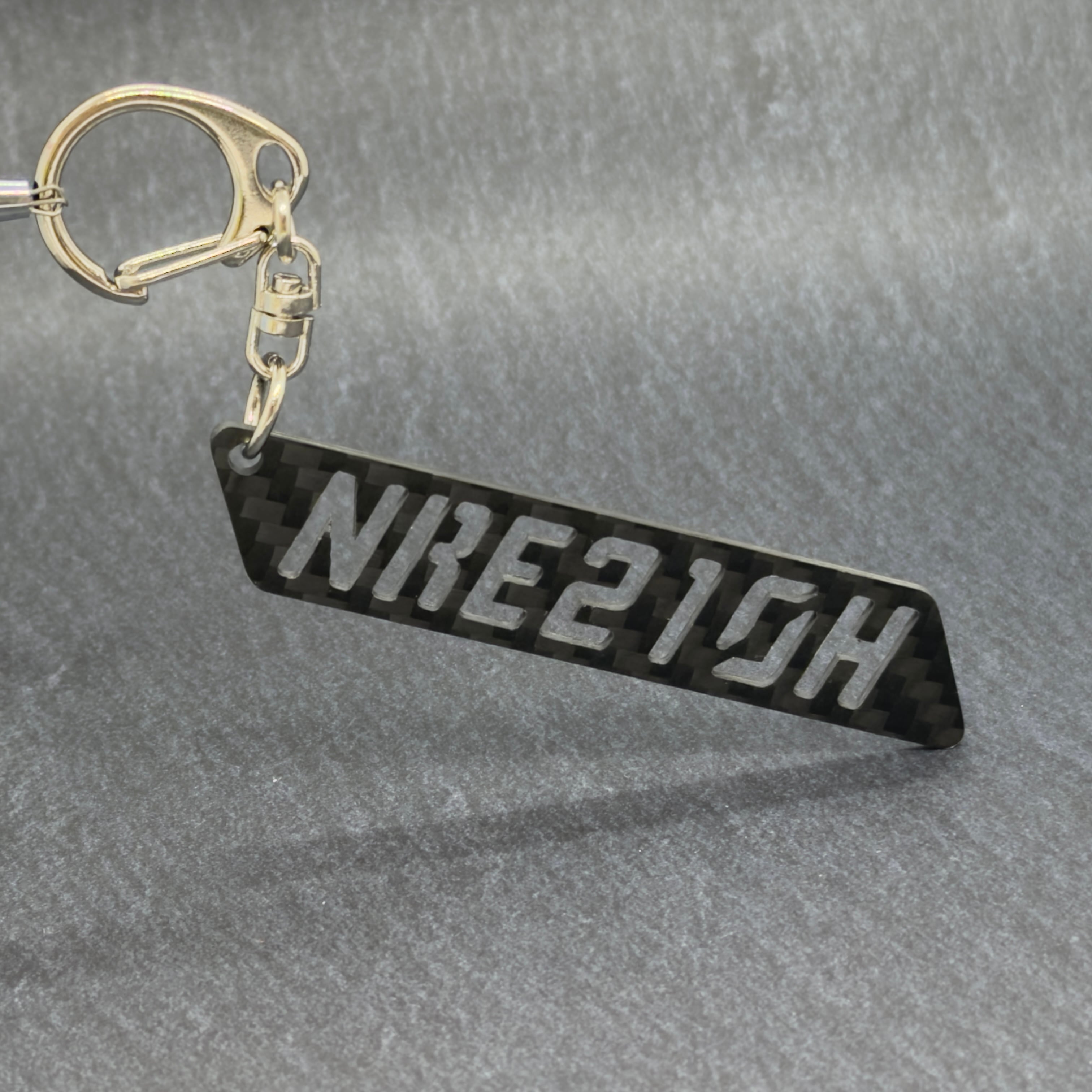 ドライカーボン製の型式キーホルダーです。