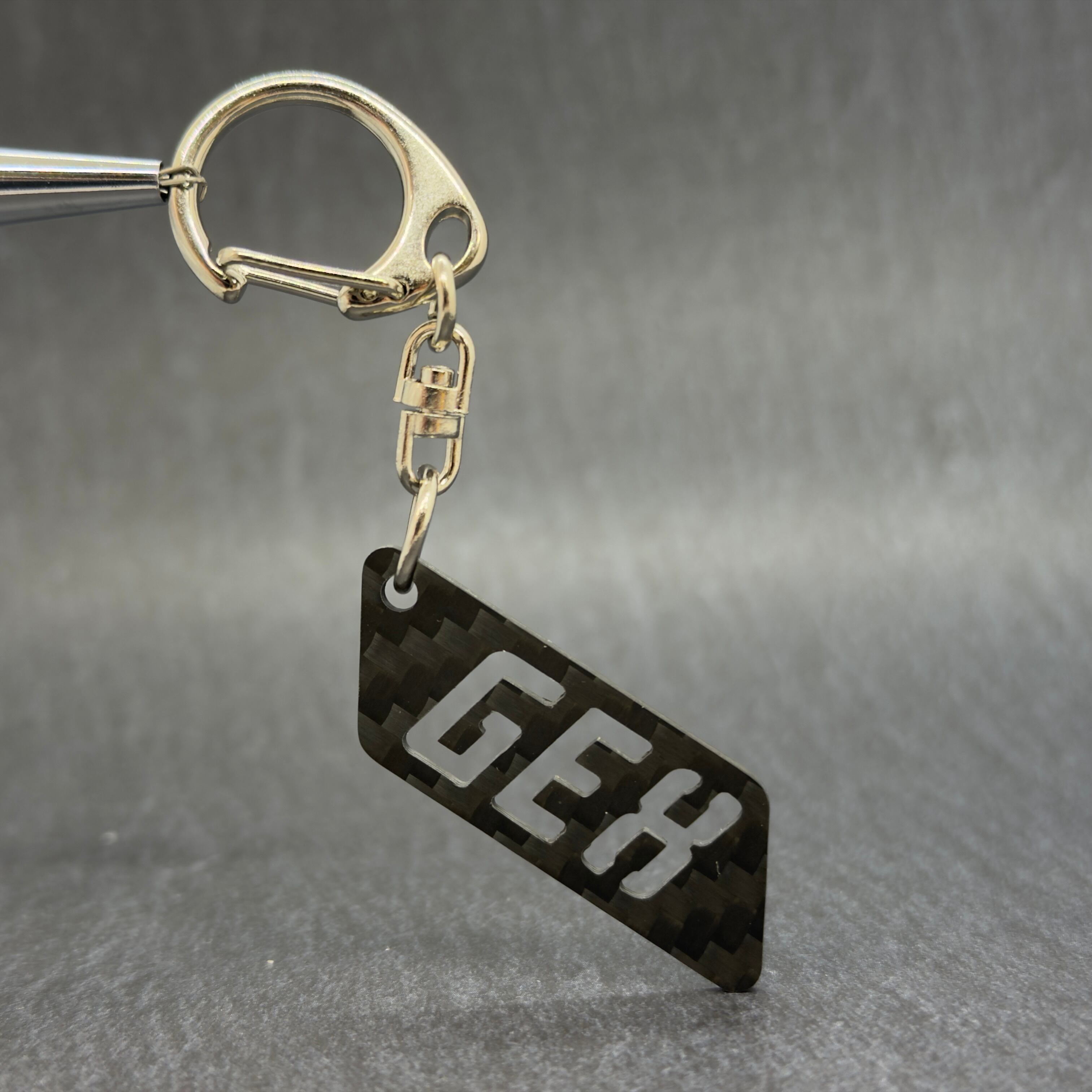 ドライカーボン製の型式キーホルダーです。