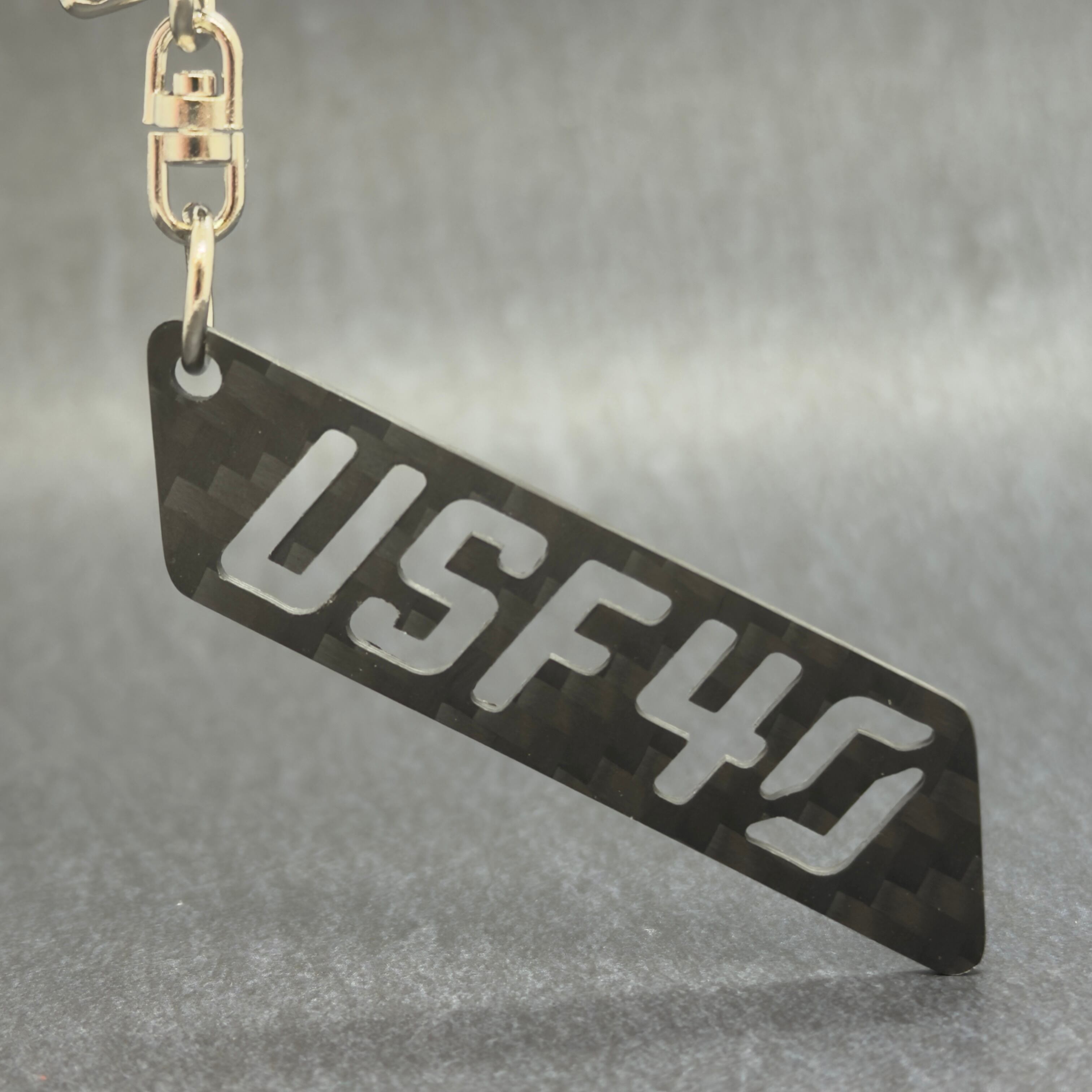 ドライカーボン製の型式キーホルダーです。